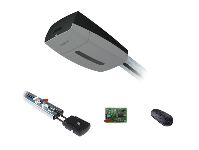Комплект автоматики для секционных ворот высотой до 2,25 м на основе привода VER10DMS (встроенный блок управления, радиоуправление с фиксированным кодом, направляющий профиль)